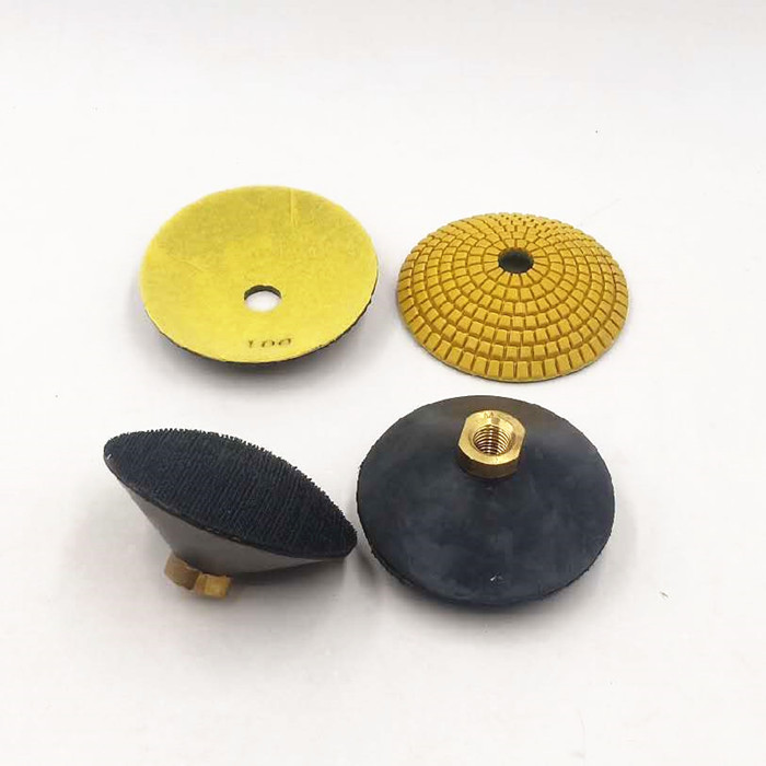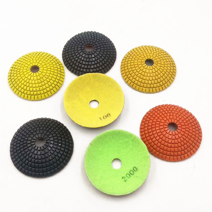 Diamond wet polishing pads are used on handheld polisher or portable grinder, to polish or renew or maintain marble granite tile or other engineered stones slab or floor.